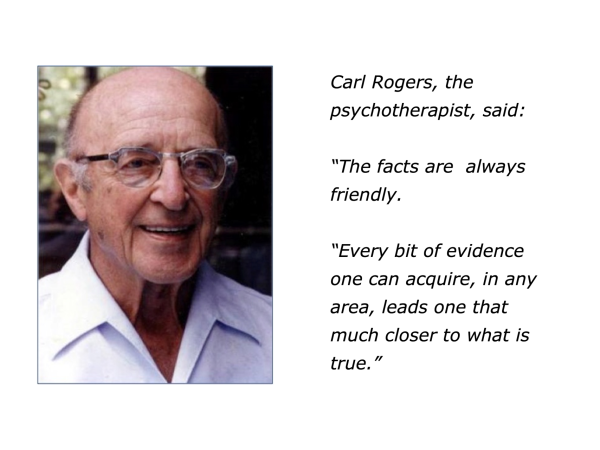 Carl Rogers believed that people grew by facing reality. We should welcome information, he said, even if the new evidence shows that our previous views were mistaken.