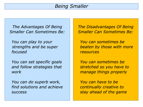 Such teams can also have disadvantages. They can sometimes be beaten by those with more resources. They can be stretched so they need to manage themselves properly. They also need to continue to be creative to stay ahead of the game.