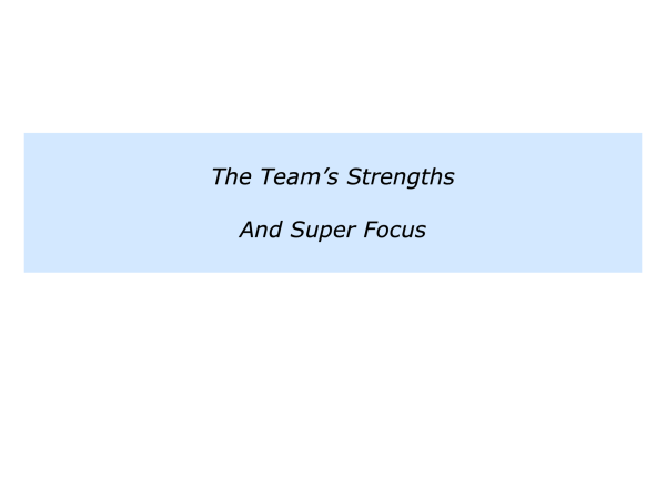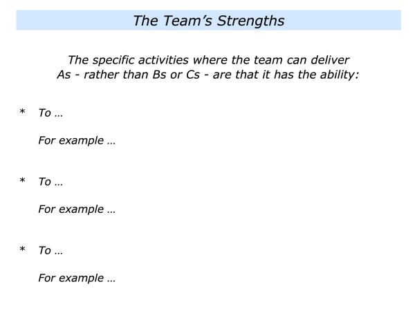 First, to describe the team’s strengths – such as the specific activities where you believe the team has the ability to deliver As rather than Bs or Cs.