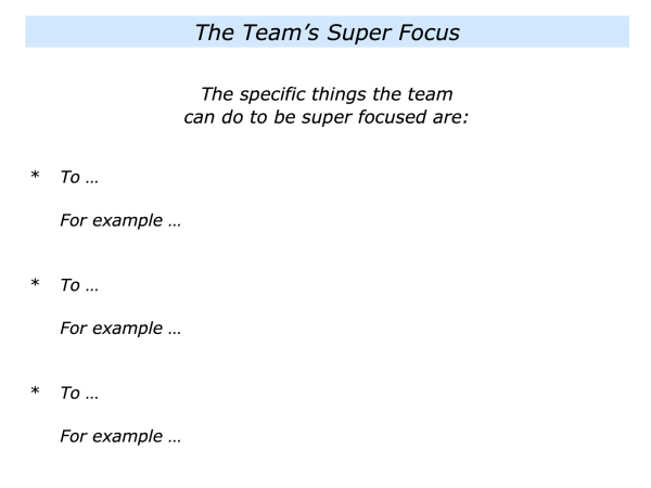 Second, to describe the specific things that you believe the team can do to be super focused.