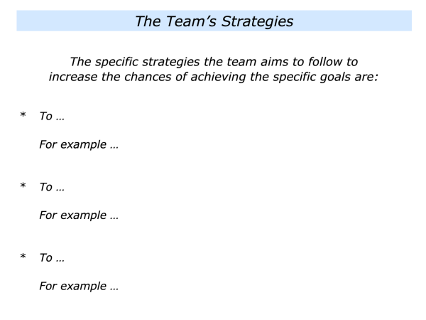 Second, to describe the strategies the team can follow to give itself the greatest chance of success.