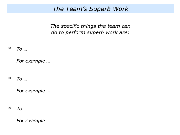 First, to describe the specific things the team can do to perform superb work.