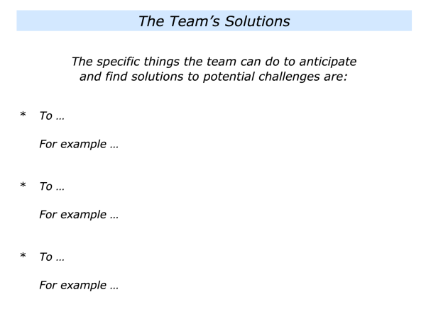 Imagine that you lead a team. If appropriate, you can focus on how it can do superb work, find solutions and do its best to achieve success. One approach is to explore the following questions.