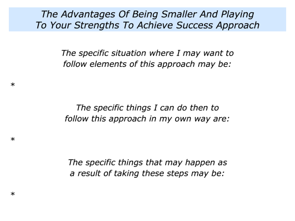 The next step involves translating the strategies into action. This is where some smaller teams can make the most of their potential advantages and do superb work.