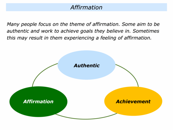 Many people focus on the theme of affirmation. Some aim to be authentic and work to achieve goals they believe in. Sometimes this may result in them experiencing a feeling of affirmation.