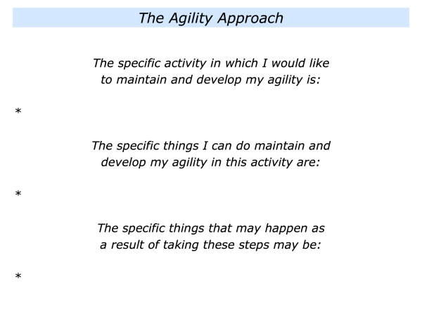 Imagine you want to maintain your agility in a specific activity. How can you do this in your own way? If you wish, try tackling the exercise on this theme. This invites you to complete the following sentences.