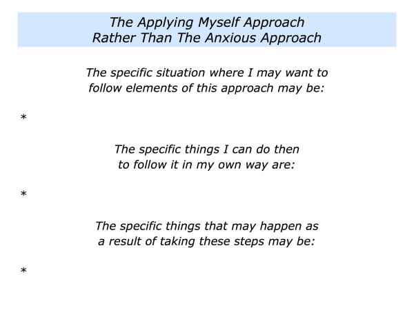 Let’s return to your own life. Can you think of a situation where you may want to follow elements of the applying yourself approach? How can you do this in your own way?