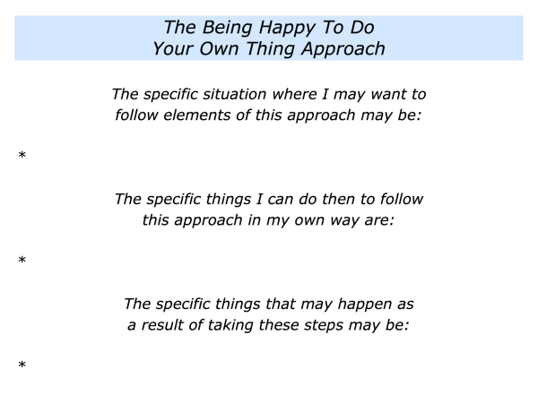 Let’s return to your own life and work. Looking ahead, can you think of a situation where you may want to follow elements of this approach? How can you do this in your own way?