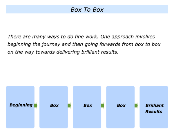 There are many ways to do fine work. One approach involves beginning the journey and then going forwards from box to box on the way towards delivering brilliant results.