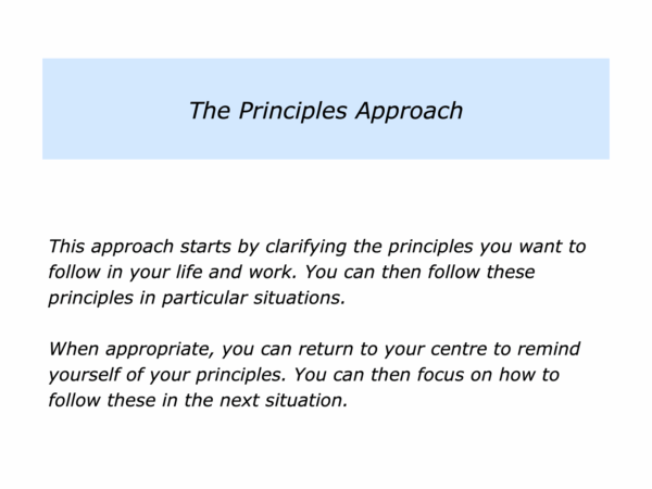 To return to your centre, refocus on your principles and then clarify how you can follow these in the next specific situation.