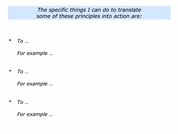Let’s assume that you have settled on the principles you want to follow. You may then aim to pursue these in different situations.
