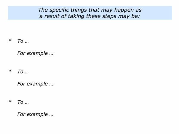 Imagine that have bought time to think and have settled on the strategy you want to pursue. It can be useful to rehearse what you are going to do next. You can then move into action and aim to achieve the desired results