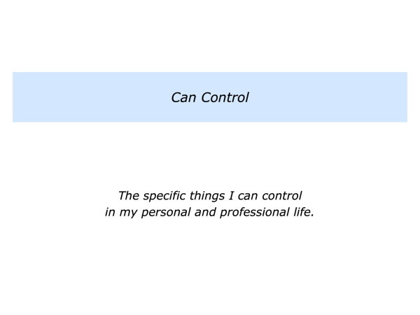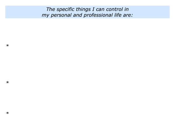 Describe the specific things you can control in your personal and professional life.