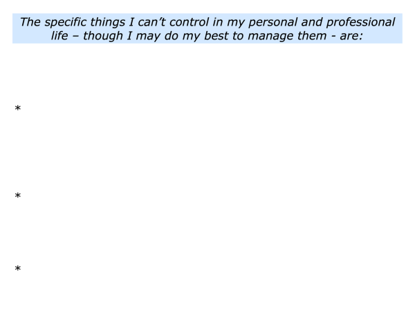 Describe the specific things you can’t control in your personal and professional life – though you may do your best to manage them.