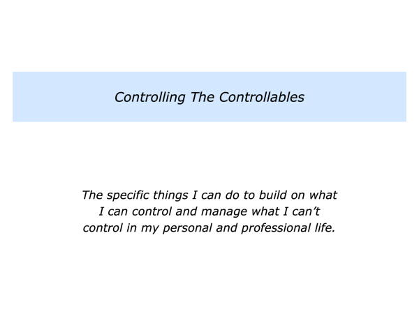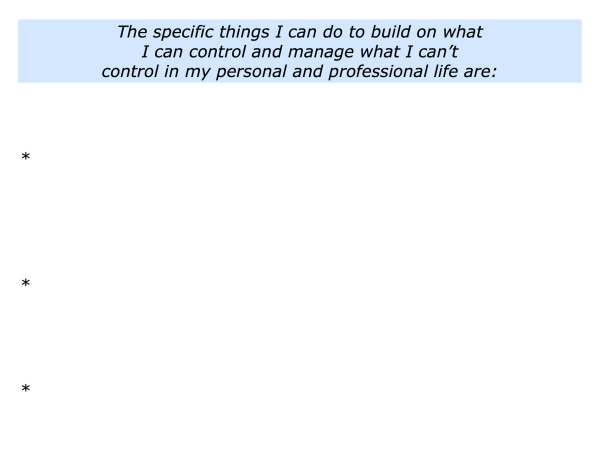 Describe specific things you can do to build on what you can control and manage what you can’t control in your personal and professional life.