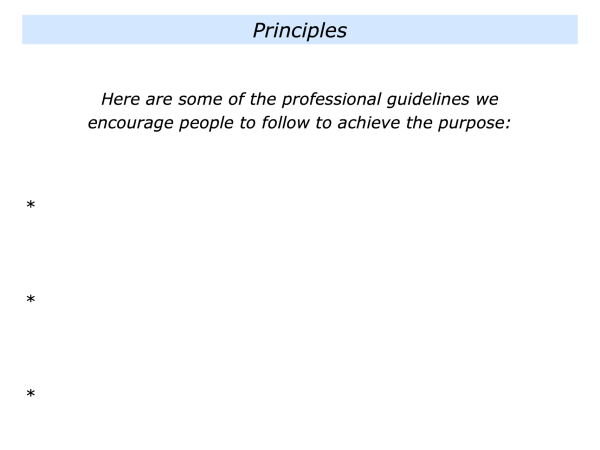 Different people may aim to follow different principles. Here are some themes that people may mention when describing their approach.