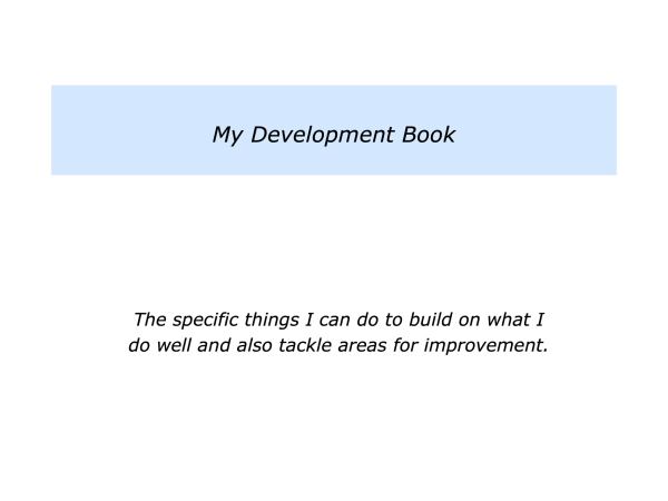 Different people do this in different ways. One approach is to keep something called My Development Book. This involves them focusing on the following themes.