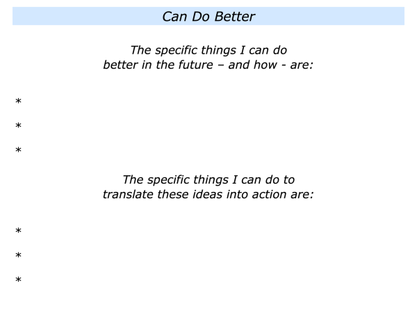 The specific things they did right or did well and how they can follow these principles more in the future;