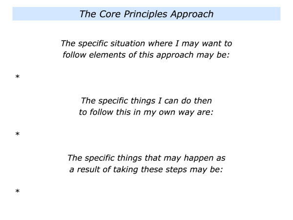 Let’s return to your own life and work. Looking ahead, can you think of a situation where you may want to follow elements of this approach? How can you do this in your own way?