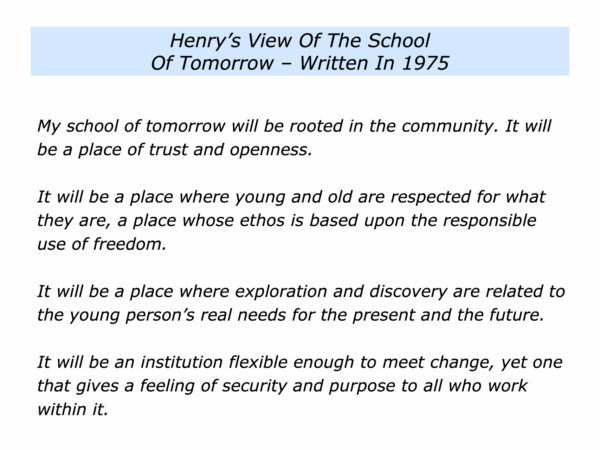 Here is an introduction to the principles people followed to help students to learn. This is followed by Henry’s view of the purpose of schools.