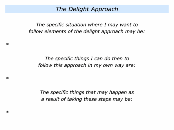 How could you follow this approach in your own way? How could you do your best to deliver the goods and help yourself or other people to experience delight? What may happen as a result of taking these steps?