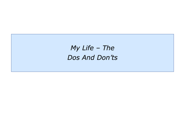 My Life – The Dos And Don’ts