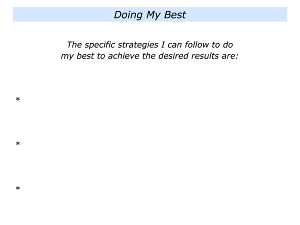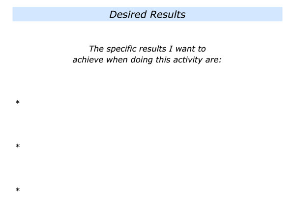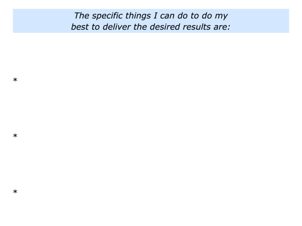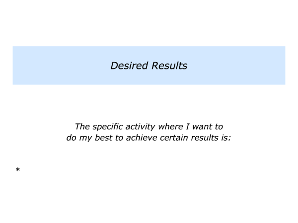 What is the activity or piece of work I want to do? What are the real results I want to achieve? What is the picture of success? What are the strategies I can follow to do my best to achieve these results?