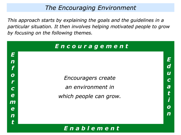 Good encouragers are also prepared to take this approach. This is because they want to protect the environment for the people who aim to follow the guidelines and do their best to achieve certain goals.