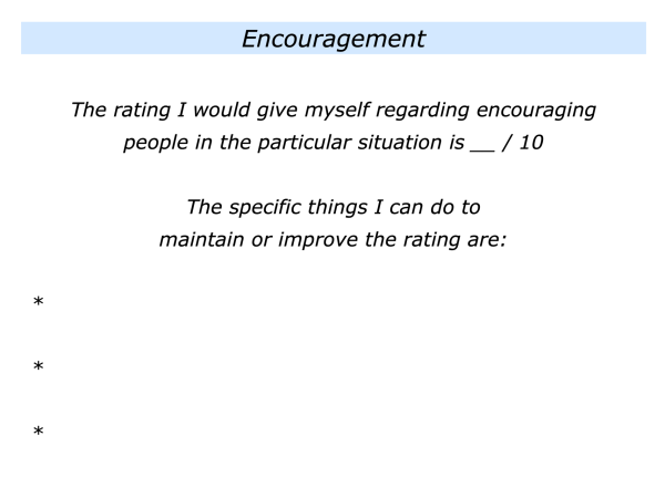 Let’s return to your own life. Imagine that you want to encourage people in particular situation in your professional life. Looking at this situation, how good do you think you are at encouraging people?