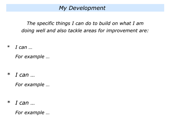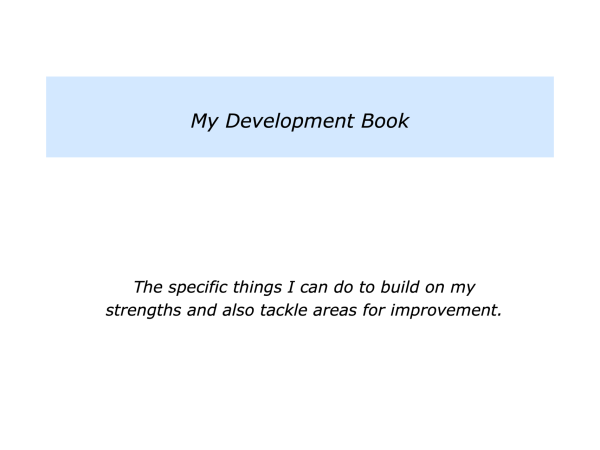 Looking back at my own career, for example, I have often encouraged people to keep something called My Development Book.