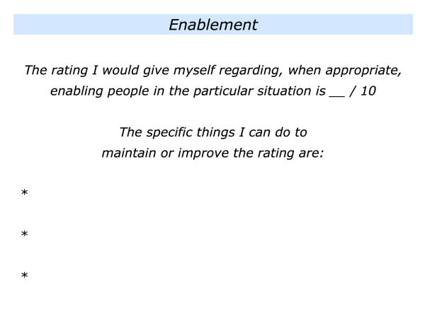 Let’s return to your own work. Imagine that you have chosen to focus on a particular situation in your professional life. Looking at this situation, how good do you think you are at enabling people?