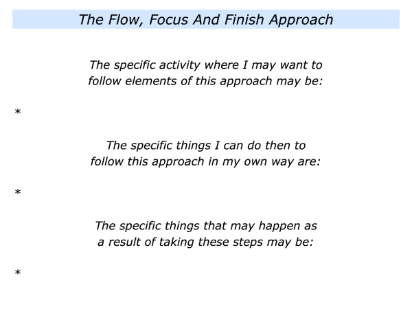 Looking ahead, can you think of a specific activity where you may want to follow the flowing approach? This could be in your personal or professional life.