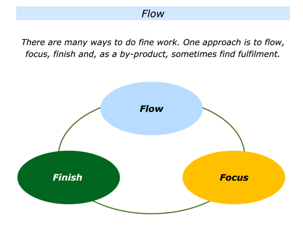 There are many ways to fine work. Some people aim to follow the flow approach. They aim to flow, focus, do fine work, finish and sometimes find fulfilment.