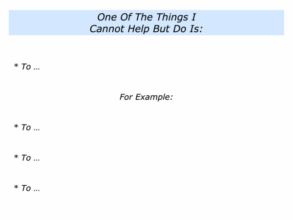 If you wish, try tackling the exercise on this theme. This invites you: a) to describe one of the things you cannot help but do; b) to give some examples of you doing this thing.