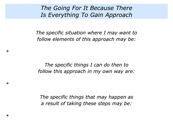 There are many ways to live life. One way is, on some occasions, to approach events by aiming to go for it because they believe there is everything to gain.