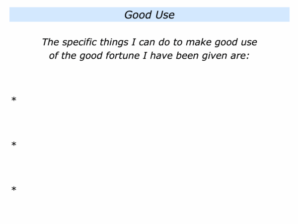 Let’s return to your life and work. How can you continue to make good use of your good fortune? How can you use the experiences and abilities you have been given? How can you help other people to succeed?