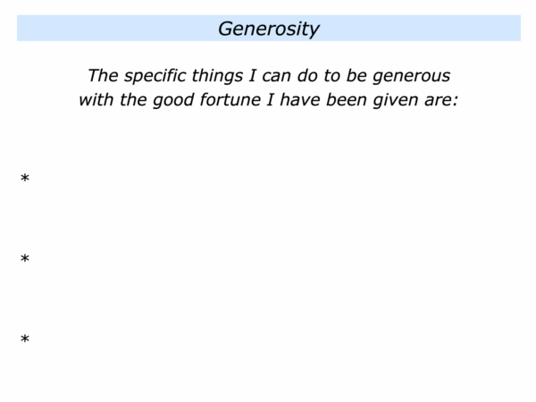 Different people are generous in different ways. Sometimes this depends on what they have been given. They may have had financial, emotional or other kinds of good fortune.