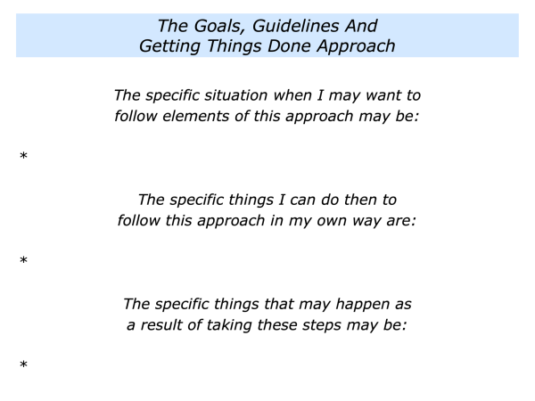 Let’s return to your own life and work. Looking ahead, can you think of a situation where you may want to follow elements of this approach? How can you do this in your own way?