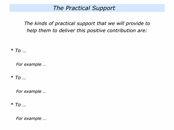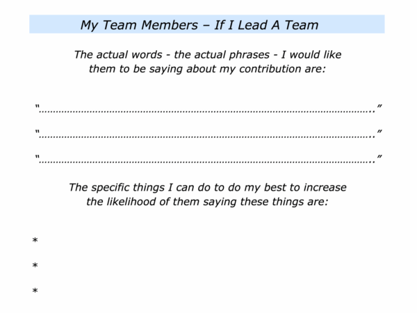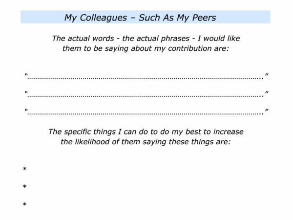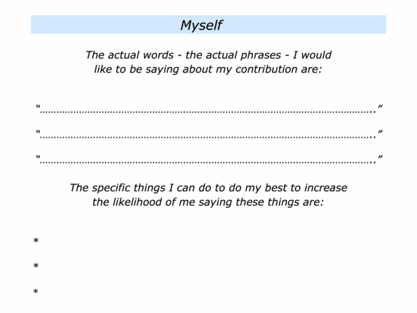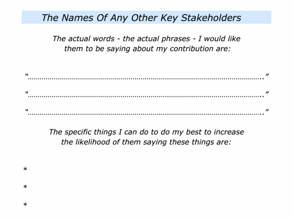 Bearing this in mind, here are some things that a person may write regarding what they may want each stakeholder to be saying about their contribution after three months.