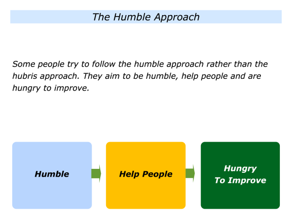People who follow the humble approach often focus on how they can continue to improve. Different people do this in different ways.