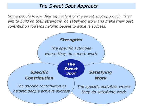 Different people then pursue their chosen path in different ways. Some follow their equivalent of the sweet spot approach.