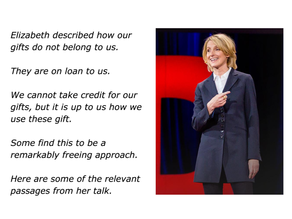 Such people often see taking this approach as simply honouring what they have been given. They echo similar sentiments to those expressed by the author Elizabeth Gilbert in one of her TED talks.