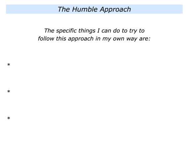 Imagine that you want to try to follow elements of the humble approach. How can you do this in your own way? If you wish, try tackling the exercise on this theme. This invites you to complete the following sentence.
