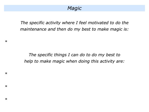 Looking ahead, how can you go beyond doing the maintenance? How can you maybe even do your best to help to make magic? If appropriate, how can you aim to give people positive memories for life?