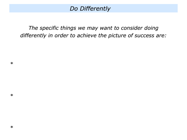 They are to write what they believe their team or the organisation may need to consider doing differently in order to achieve the future goals.