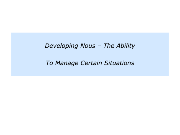 A person may show talent during the early part of their career but may not always use this properly. They can be helped to develop their nous by learning by educators, coaches or mentors.