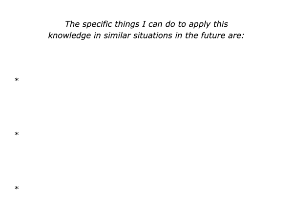 Let’s return to your own life and work. Looking ahead, can you think of a situation where you may want to follow elements of this approach? How can you do this in your own way?