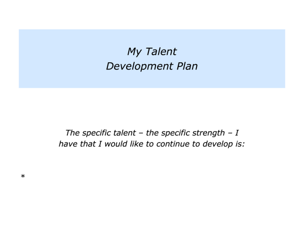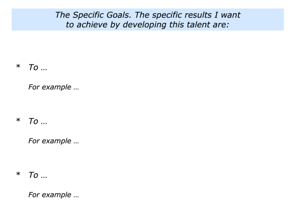 Imagine that a person wants to build on their natural talent. If appropriate, you can then invite them to do the following exercise. This involves them focusing on the following themes. They can aim:
