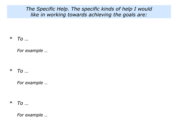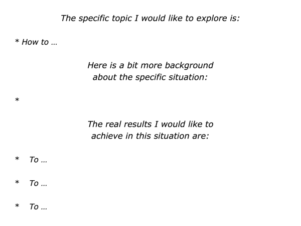 Here is the framework the person can use to do some prework and then, after the session, focus on their future action plan.