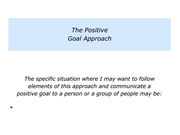The Positive Goal Approach
